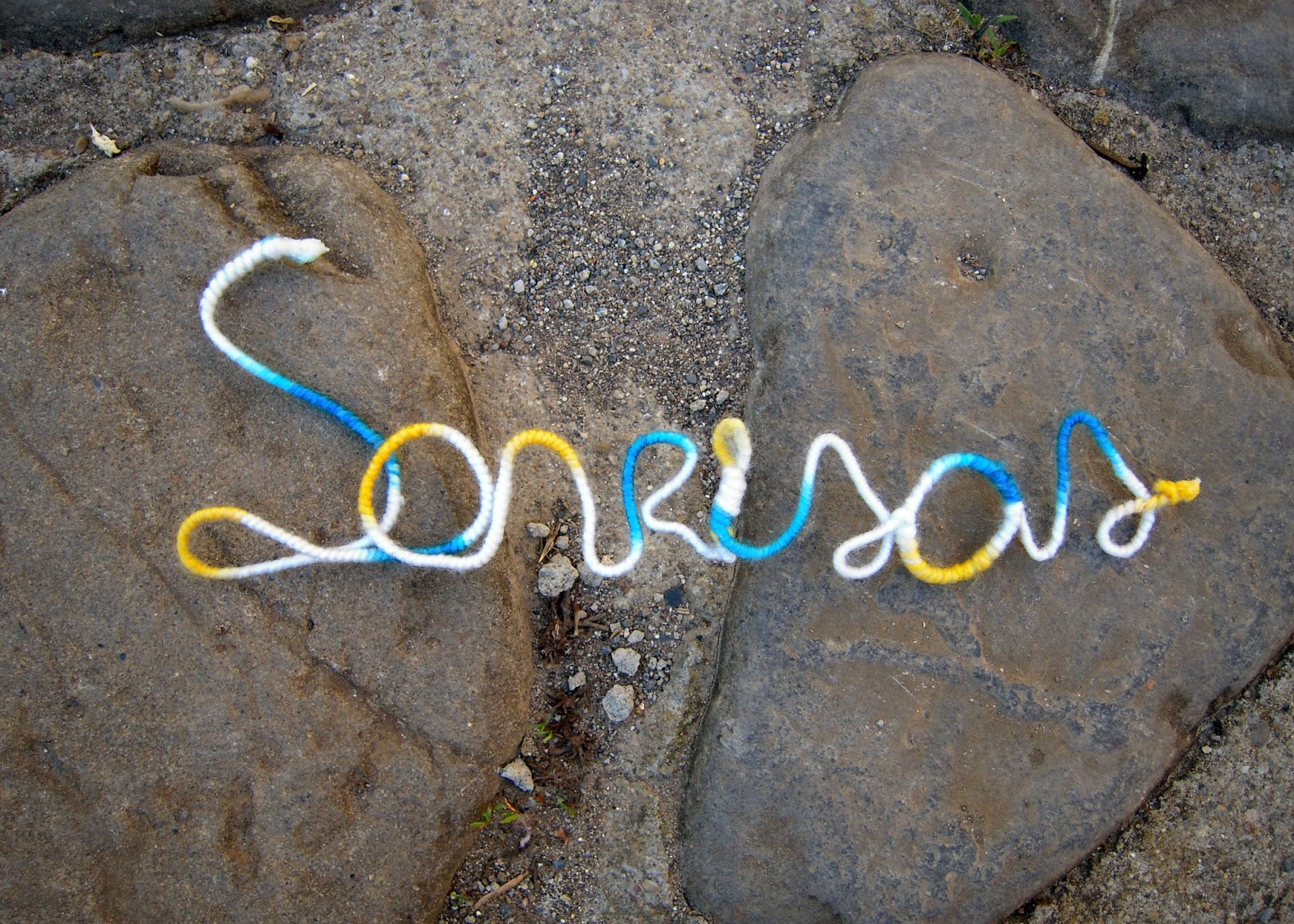 Al final optamos por hacer una intervención en un espacio del pueblo con materiales elaborados a partir de material reciclado: restos de lana y cuerdas, tapones de botellas, cápsulas de café, alambre, etc.